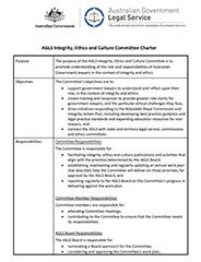 The purpose of the AGLS Integrity, Ethics and Culture Committee is to promote understanding of the role and responsibilities of Australian Government lawyers in the context of integrity and ethics.